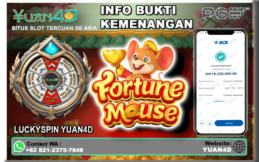 YUAN4D Fortune Mouse situs slot online terpercaya yang sudah dikenal memberikan payout nyata kepada ribuan pemain setiap hari. Kali ini, kemenangan fantastis terjadi di game populer dari PG SOFTโ€”slot bertema tikus pembawa keberuntungan yang terkenal gampang kasih Big Win bahkan Maxwin!