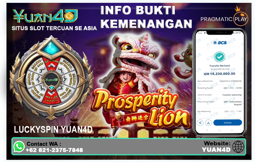 Bukti nyata kemenangan besar bermain Prosperity Lion di YUAN4D! Raih keberuntungan bersama singa emas pembawa hoki dan nikmati kemenangan hingga jutaan rupiah setiap hari!