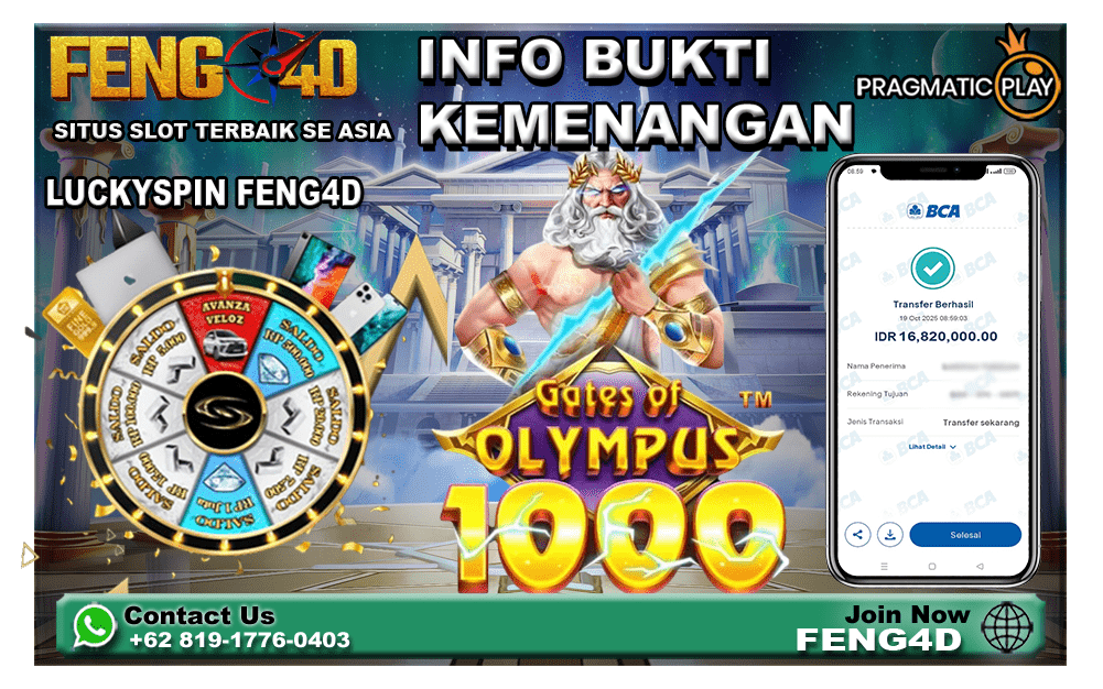 Kemenangan para pemain di FENG4D menjadi bukti nyata kekuatan slot Gates of Olympus 1000. Game ini tidak hanya menghibur, tapi juga memberikan peluang besar untuk meraih keuntungan nyata. Dengan desain visual yang memukau, animasi petir yang epik, dan multiplier hingga ribuan kali, setiap spin terasa menegangkan dan penuh harapan.