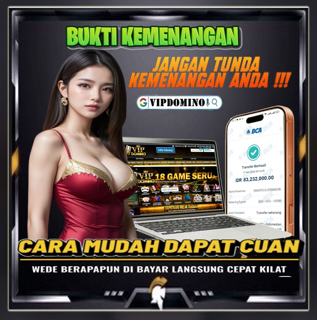 “Main BandarQ di VIP DOMINO tuh enak banget! Kartu sering bagus, server lancar, dan WD-nya paling cepat. Awalnya cuma coba-coba, malah menang 102 juta!” — ungkap salah satu pemenang.