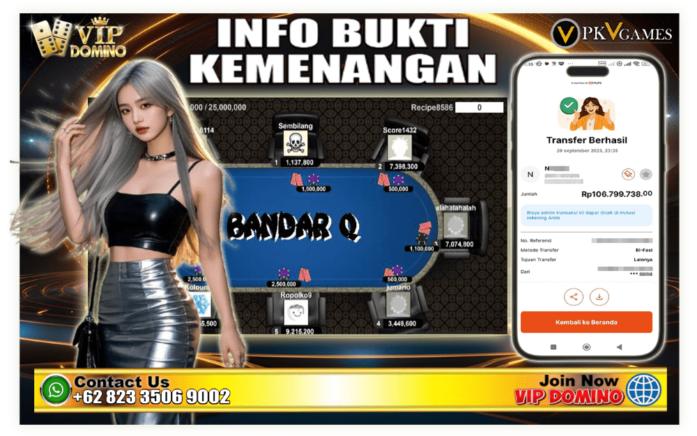 Proses kemenangan 106jt ini dibayarkan dengan cepat, aman, dan tanpa ribet. Hal ini semakin menegaskan bahwa VIP Domino bukan hanya situs PKV terbaik, tetapi juga situs terpercaya yang selalu membayar berapapun kemenangan membernya.