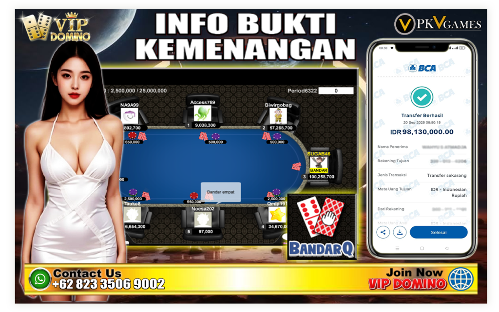 VIPDOMINO -Kemenangan 98 Juta Bermain di Situs PKV Terbaik di Indonesia . Kabar gembira datang dari dunia PKV Games! Seorang pemain sukses membawa pulang kemenangan besar hingga Rp98.130.000 setelah bermain di VIP DOMINO, situs PKV terbaik dan terpercaya di Indonesia. Keberhasilan ini menjadi bukti nyata bahwa bermain di situs yang tepat bisa menghadirkan pengalaman seru sekaligus keuntungan nyata.