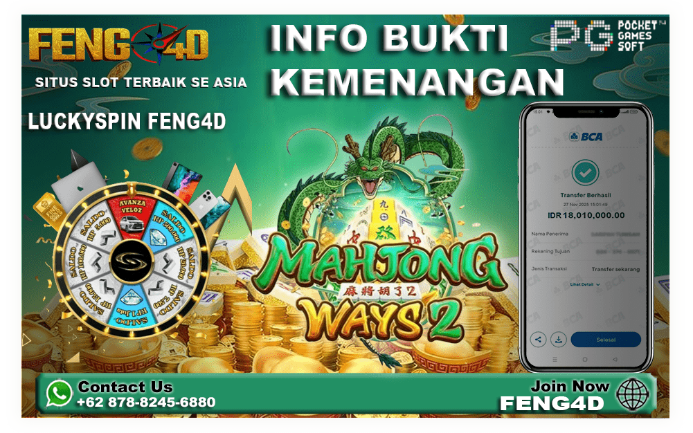 FENG4D –Mahjong Ways 2 adalah game slot yang sangat populer karena fitur perkalian bertingkat (multiplier), Wild Transform, dan Free Spin Scatter yang mampu memberikan kemenangan meledak hingga berkali-kali lipat. Banyak pemain mendapatkan jackpot besar karena gameplay-nya stabil dan peluang max win cukup tinggi.