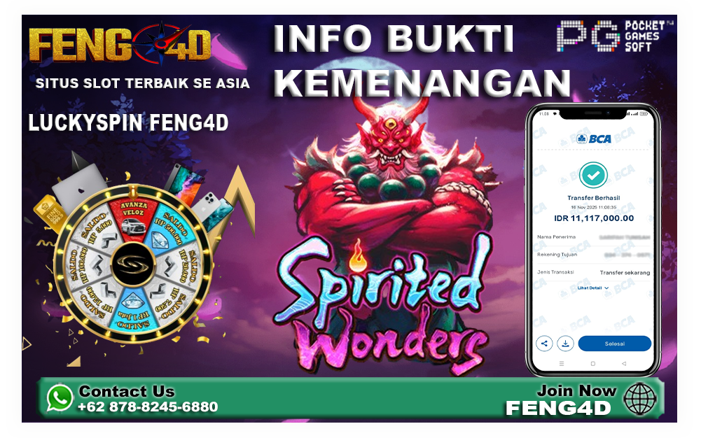 FENG4D – Spirited Wonders adalah salah satu game slot PG Soft bertema Yokai dan roh Jepang yang dipuji banyak pemain karena tumble cepat, multiplier bertingkat, dan Free Spins liar yang bisa menghasilkan kemenangan puluhan hingga ratusan kali lipat.