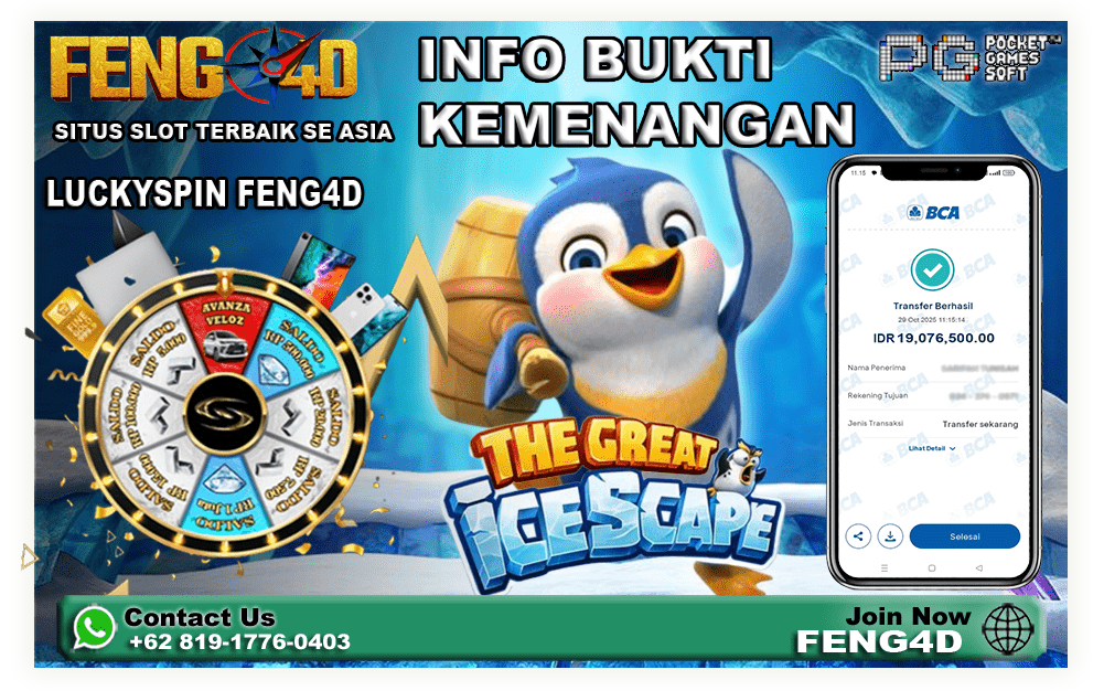 FENG4D – Baru-baru ini, seorang pemain di FENG4D berhasil mencetak kemenangan besar saat bermain The Great Icescape, slot bertema kutub yang lucu dan penuh kejutan dari PG Soft. Dengan modal kecil hanya Rp 2.000, pemain tersebut sukses membawa pulang kemenangan fantastis hingga Rp 19.076.500 berkat kombinasi hoki dan strategi yang tepat. Permainan ini memang dikenal punya potensi kemenangan besar berkat fitur Respin Berantai dan Pengali (Multiplier) yang bisa melipatgandakan hasil setiap putaran.