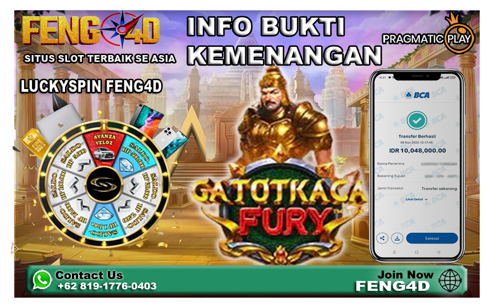 FENG4D – Gatot Kaca’s Fury adalah slot bertema pahlawan super nusantara karya Pragmatic Play yang terinspirasi dari legenda pewayangan Jawa — Gatot Kaca, sang otot kawat tulang besi. Dengan tampilan visual megah dan fitur multiplier yang bisa naik hingga x500, game ini menjadi favorit banyak pemain slot Indonesia karena sensasi “super power”-nya yang bisa memicu Maxwin besar hanya dari 3 Scatter!