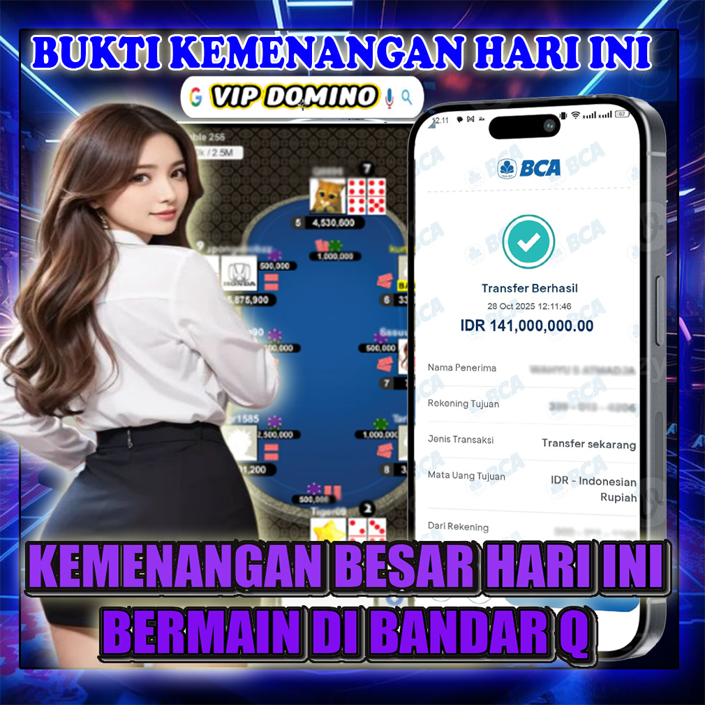 VIP DOMINO – π Kemenangan Fantastis 141 Juta Bermain di VIP DOMINO GACOR! πSiapa sangka, bermain di VIP DOMINO bisa membawa keberuntungan besar hingga ratusan juta! Baru-baru ini, salah satu member setia berhasil mencetak kemenangan Rp141.000.000 hanya dengan modal kecil di situs VIP DOMINO GACOR, platform PKV Games terpercaya yang sudah dikenal dengan sistem permainan fair play dan peluang jackpot yang tinggi.