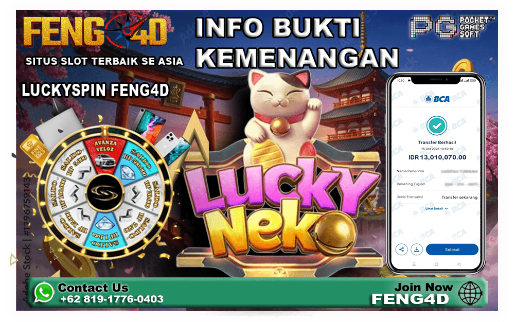 Kemenangan Lucky Neko bukan semata-mata keberuntungan, tetapi hasil dari pemahaman fitur dan pola permainan. Dengan memanfaatkan mode Free Spin dan Multiplier secara maksimal, peluang Jackpot besar bisa sangat tinggi. Bukti kemenangan member FENG4D senilai Rp 13.010.070 menjadi contoh nyata bahwa Lucky Neko bisa membawa hoki luar biasa bagi siapa saja yang tahu waktu dan strateginya.