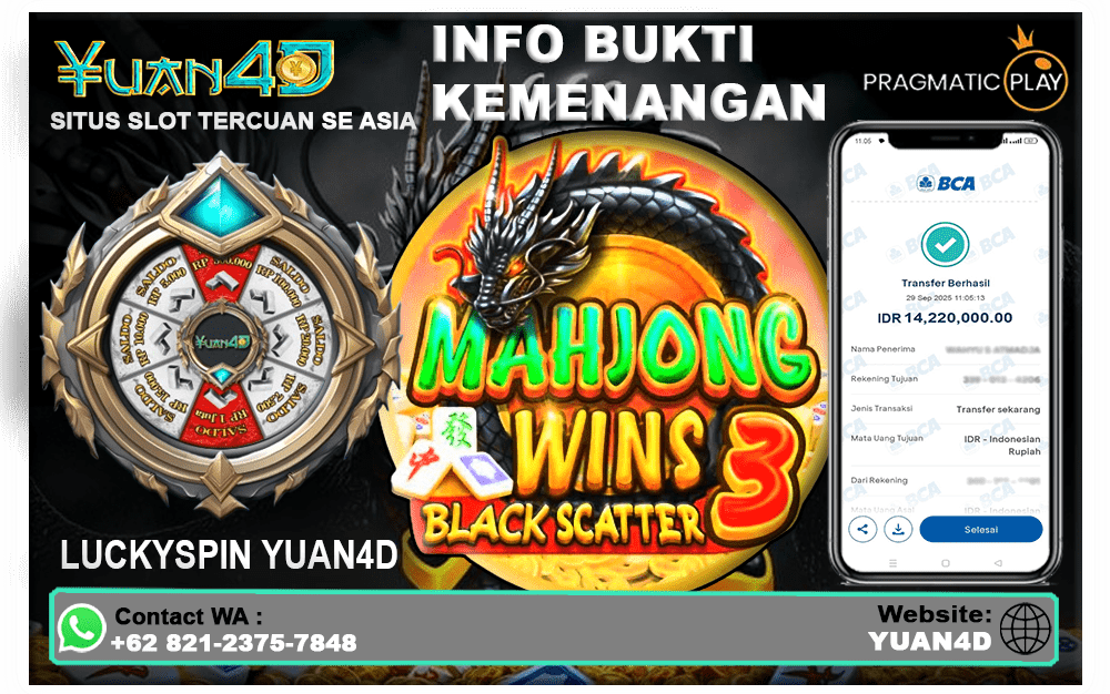 YUAN4D – Kemenangan Mahjong Wins 3 Rp 14,220,000 di YUAN4D. Seorang pemain berhasil mencetak kemenangan besar senilai Rp 14.220.000 saat bermain Mahjong Wins 3 di platform YUAN4D. Peristiwa ini menambah daftar kisah menarik dari dunia hiburan digital, di mana permainan slot modern berpadu dengan sensasi budaya klasik.