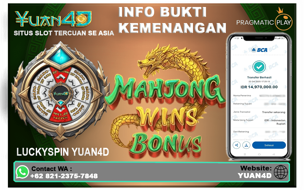 FENG4D – Maxwin Mahjong Wins Bonus di FENG4D. Permainan slot Mahjong Wins dari PG Soft kembali mencetak sensasi di dunia slot online. Kali ini, salah satu member setia YUAN4D berhasil meraih Superwin besar dari fitur Bonus dengan total kemenangan fantastis. Permainan bertema klasik Tiongkok ini tidak hanya menawarkan tampilan elegan, tetapi juga peluang menang luar biasa tinggi. Selain itu, kombinasi simbol khas Mahjong dan efek visual yang memikat membuat game ini menjadi favorit banyak pemain.