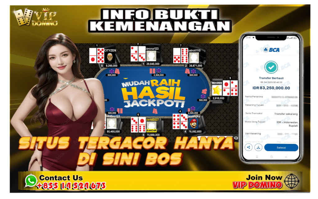 VIP DOMINO – Menang 102 Juta Bermain BandarQ di VIPDOMINO – Bukti Nyata Cuan Maksimal! Lagi dan lagi, VIPDOMINO membuktikan diri sebagai tempat terbaik untuk cuan dari permainan kartu online! Kali ini, seorang member sukses meraih kemenangan fantastis sebesar Rp 127.000.000 hanya dari bermain BandarQ dalam satu malam saja. Kemenangan ini bukan hasil hoki semata, tapi perpaduan antara strategi cerdas dan platform yang 100% fairplay!