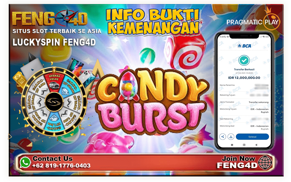 FENG4D – Trik Hebat Bermain Candy Burst di FENG4D. Kabar bahagia datang dari salah satu member setia FENG4D. Ia berhasil menang besar saat bermain slot Candy Burst dengan total kemenangan mencapai Rp 12.000.000. Dengan modal kecil dan kesabaran tinggi, pemain ini akhirnya memicu fitur ledakan permen yang menghadirkan kombinasi kemenangan beruntun. Akibatnya, saldo kemenangan terus bertambah hingga mencapai angka fantastis!