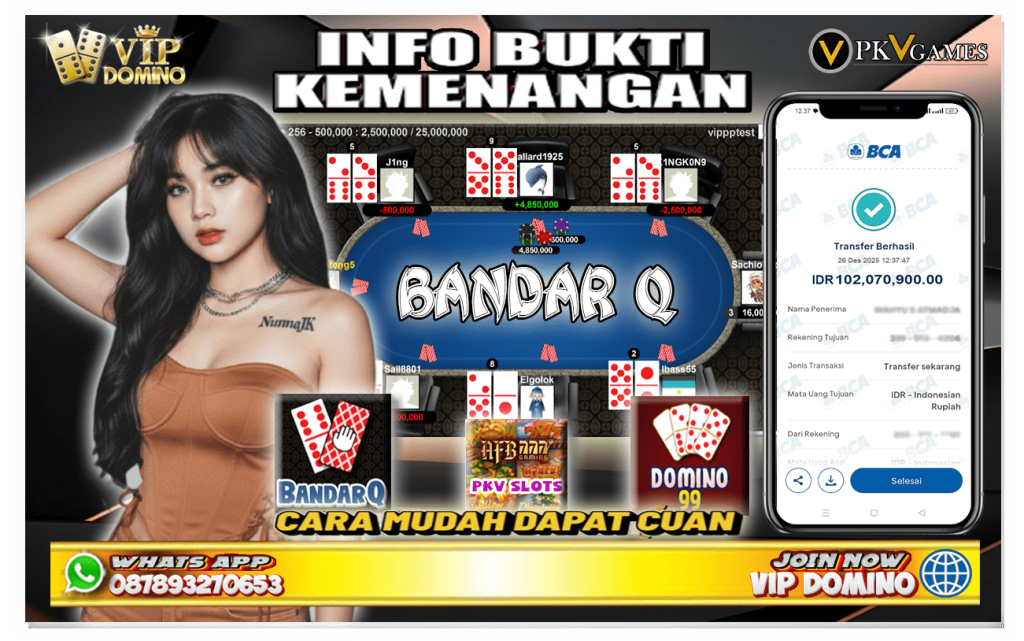 VIP DOMINO – VIP Domino Gacor! Strategi Jitu Bermain Hingga Raih Kemenangan 102.070.900.Kembali membuktikan diri sebagai platform permainan online paling gacor dan terpercaya. Pada sesi permainan terbaru, seorang member berhasil meraih kemenangan fantastis sebesar 102.070.900 rupiah, sebuah pencapaian luar biasa yang menjadi sorotan banyak pemain.